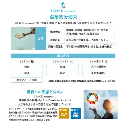 成分と製造方法にこだわったグレースミネラルは、疲れやコリを癒して気分をリフレッシュしてくれます。